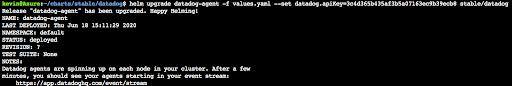 Helm is used to installed datadog agent inside the cluster by those steps and the containerized Datadog agent is deployed as a Kubernetes daemonset: