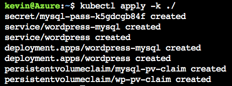 Now, let’s deploy a containerized wordpress application inside the Kubernetes cluster following this procedure: wordpress application and it works without any issue. Here, containerized wordpress application, associated database, persistent volume are realized through Azure CLI command using kubectl. The service type used during this deployment is load balancer and you will get an routable IP address to access your service after those procedures.